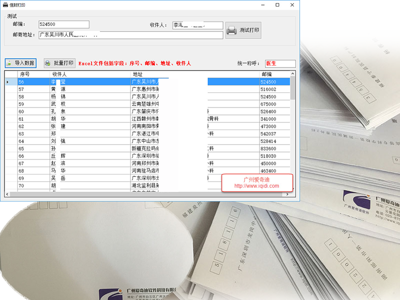 信封地址套打、批量準(zhǔn)確